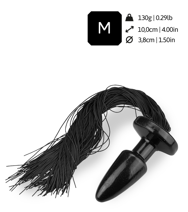 Der Plug aus leicht nachgiebigem PVC verfügt über eine schmale Spitze und einen 6 cm breiten Stopper. Dank der schmalen Spitze lässt sich der Plug einführen. Der Stopper sorgt dafür, dass bei Ihrem erotischen Spiel nichts verrutschen kann. Die weichen Riemen aus Silikon haben eine Länge von 31 cm. Sie streichen bei jeder Bewegung über die Oberschenkel von Träger oder Trägerin oder lassen sich als Peitsche nutzen.