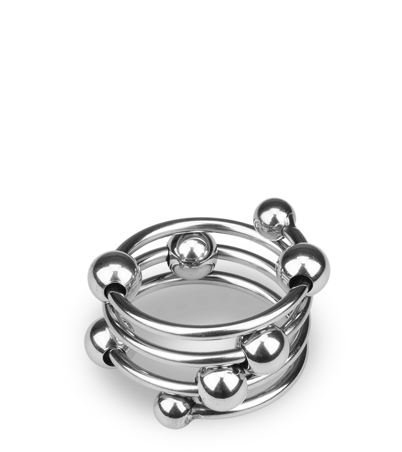 Der spiralförmige Penisring aus Edelstahl ist mit acht Kugeln versehen. Zwei Kugeln befinden sich an den Enden der Spirale und sechs Kugeln verteilen sich über die Spirale. Sie sind beweglich und können beliebig verschoben werden. Der Penisring drückt mit diesen 8 Kugeln ganz sanft von außen auf den Penis und sorgt für einen Blutstaueffekt und eine sinnliche Penismassage. Der Penis wird dadurch besonders empfindliche für alle weiteren Stimulationen.