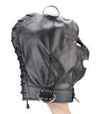Bondage-Haube aus Kunstleder mit drei Öffnungen und Ringen