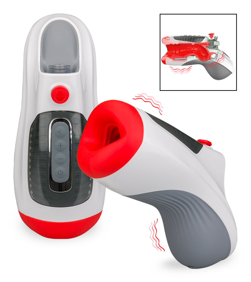 Der Masturbator ist ein echtes High-Tech-Sextoy, das alle Liebhaber von automatischen Masturbatoren begeistern wird. Die Öffnung mit dem leicht gekrümmten Lusttunnel erinnern an einen weichen Mund. Die zahlreichen Noppen und Erhebungen auf der Innenseite und das weiche, elastische Material vermitteln ein realistisches und gefühlsechtes Blowjob-Feeling. Sobald Sie den Penis in die Öffnung einführen, beginnt der Masturbator die Luft nach hinten einzuziehen und bereitet Ihnen dadurch ein intensives Lusterlebnis. Die Saugfunktion stoppt erst, wenn Sie den Penis wieder aus dem Lusttunnel ziehen. Für die Vibrationen verfügt der Masturbator über 2 Motoren. Der eine sitzt vorne und erzeugt konstant Vibrationen, während sich der zweite im hinteren Bereich erst dann einschaltet, wenn der Penis komplett eingeführt ist. Insgesamt stehen Ihnen 10 unterschiedliche Modi zur Verfügung. Wenn Sie während des Blowjobs nicht auf sinnliches Stöhnen verzichten möchten, schließen Sie einen Kopfhörer an den Masturbator an und lassen Sie sich überraschen!