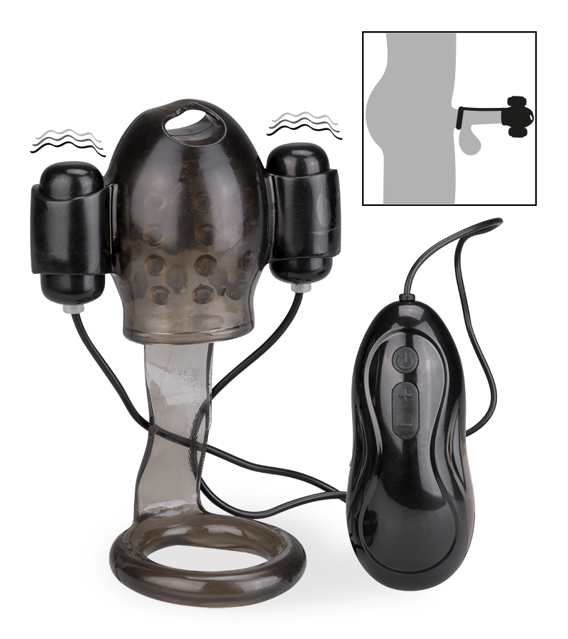 Das kleine Sexspielzeug für Männer besteht aus einer genoppten Manschette, die über die empfindliche Eichelspitze gezogen wird. Für eine stimulierende Massage der Eichel können Sie unter 10 unterschiedlichen Vibrationsmodi wählen, die über die kabelgebundene Fernbedienung gesteuert werden. An der Basis des Sexspielzeugs befindet sich außerdem ein elastischer Cockring, der an der Peniswurzel positioniert wird und durch sanften Druck seine erektionsfördernde Wirkung voll entfalten kann.