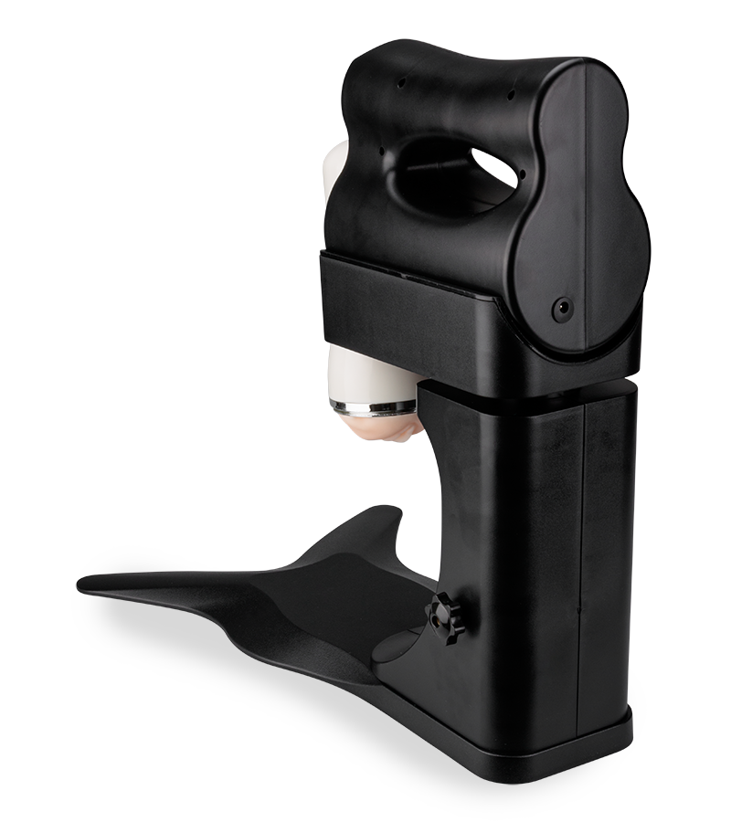 1. Nehmen Sie den Masturbator an seinem Griff und schieben Sie ihn auf die Halterung.