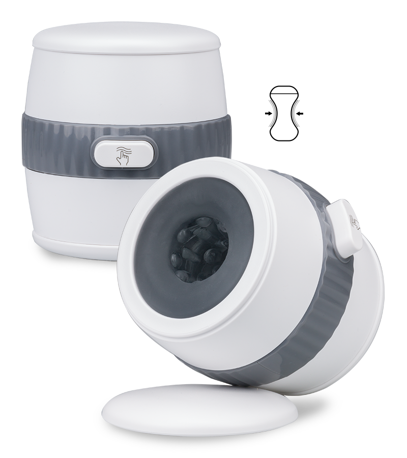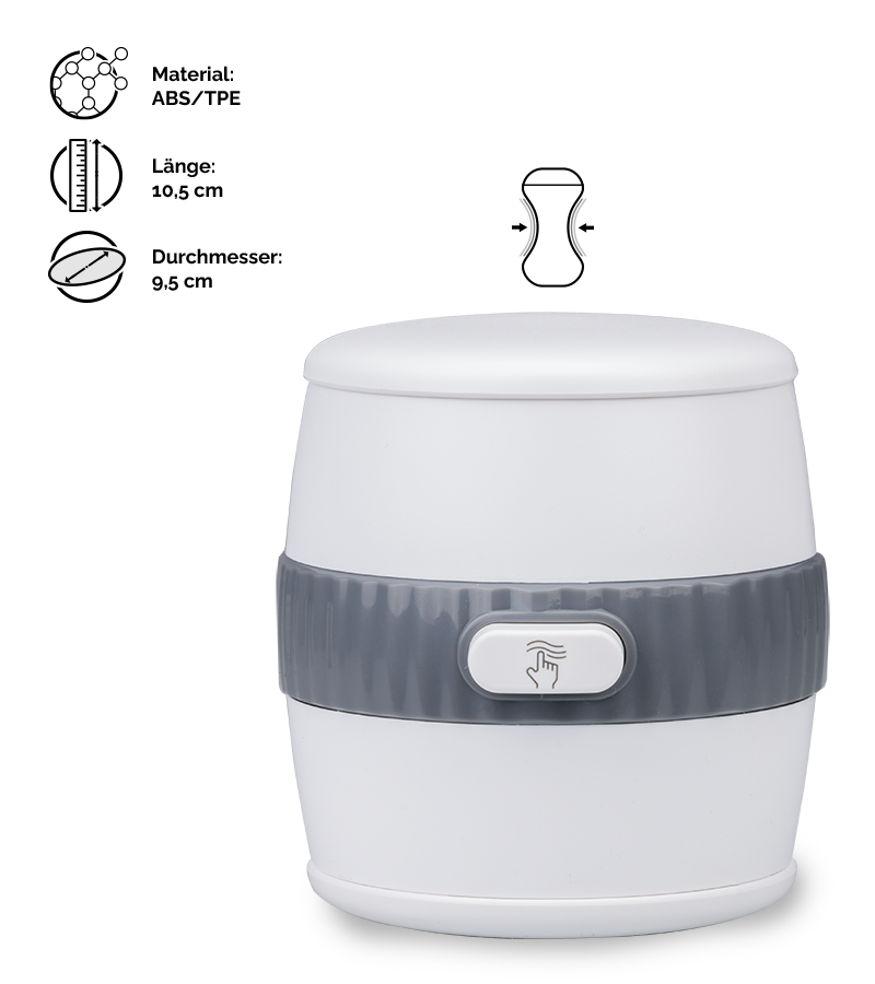 Der manuelle Masturbator Rimmy ist ein Sexspielzeug, das unglaublich einfach zu bedienen ist. An beiden Enden des Sexspielzeugs befindet sich ein Abdeckung, die entfernt werden kann, um einen durchgängigen Lusttunnel zu schaffen. Das angenehme Sleeve umschließt Ihr bestes Stück weich und fest. Auf Knopfdruck kann von außen ein sanfter Druck auf Ihren Penis ausgeübt werden. Wenn Sie den Masturbator gleichzeitig manuell auf- und abbewegen kommen Sie mit dem Toy problemlos zum Orgasmus. Dank des manuellen Betriebs sind weder Batterien noch Strom nötig: Der Masturbator hat eine handliche Größe und begleitet Sie auf allen Reisen ganz diskret. Das genoppte Sleeve besteht aus TPE. Der Innendurchmesser kann durch das flexible Gehäuse auf bis zu 5 cm erweitert werden. Der Tunnel ist 9 cm lang.