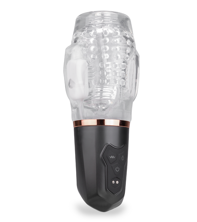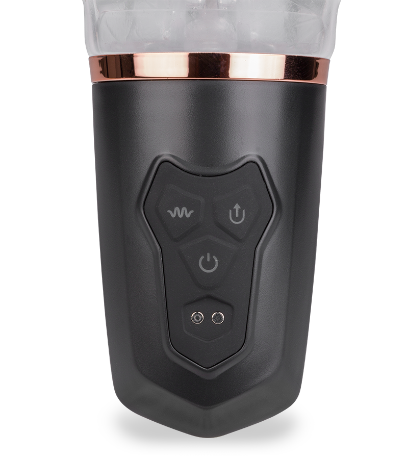 Der Masturbator besteht aus einem praktischen Griff aus ABS und einem TPE-Sleeve mit stark ausgeprägter Rillen- und Noppenstruktur. Über das Bedienfeld am Griff können Sie die Vibrationen in 10 Modi und die Saugfunktion in 5 Modi steuern. Der Masturbator eignet sich für alle, die auf intensive und kraftvolle Stimulationen stehen.