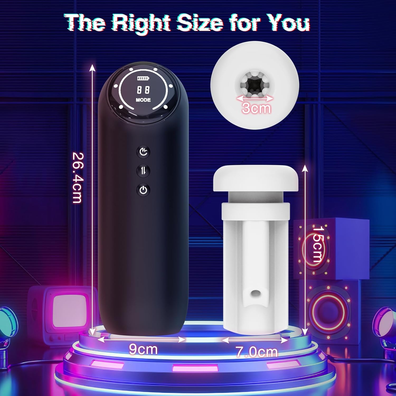 • 💖【Elegantes Aussehen & LCD-Display】 Mit seiner technikaffinen Form und dem soliden schwarzen Design ist dieser Masturbator so schlicht und elegant, dass er wie ein hochwertiger Smart Speaker aussieht. Auf dem hochwertigen LCD-Display werden die Leistungsstufe und der Modus angezeigt, um das Vergnügen zu visualisieren. Niemand wird ahnen, dass sich unter seinem edlen Äußeren ein erotischer Meister verbirgt, der dich zum Erröten bringen wird.