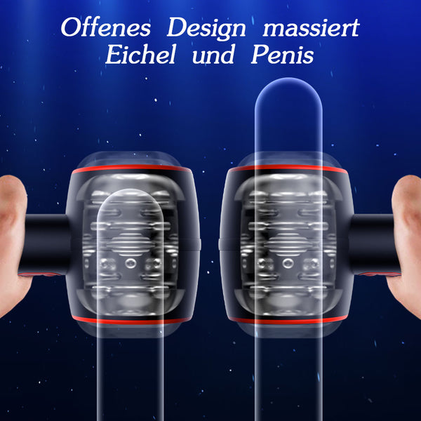 【Offenes Design ermöglicht manuelle Masturbation und Oralsex】 Das offene Design des automatischen Penis-Stroktor-Tappers macht ihn vielseitig genug, um im Solo- oder gemeinsamen Spiel verwendet zu werden. Indem Sie sich ganz auf die Massage der Eichel konzentrieren, können Sie der Eichel ein intensives Vergnügen bereiten, da die Kanäle tatsächlich auf die Nervenenden um die Eichel herum wirken. Sie können ihn auch als Penis-Masturbator verwenden. Die Eichel kann am anderen Ende herausragen, damit Ihr Partner eine orale Stimulation durchführen kann.