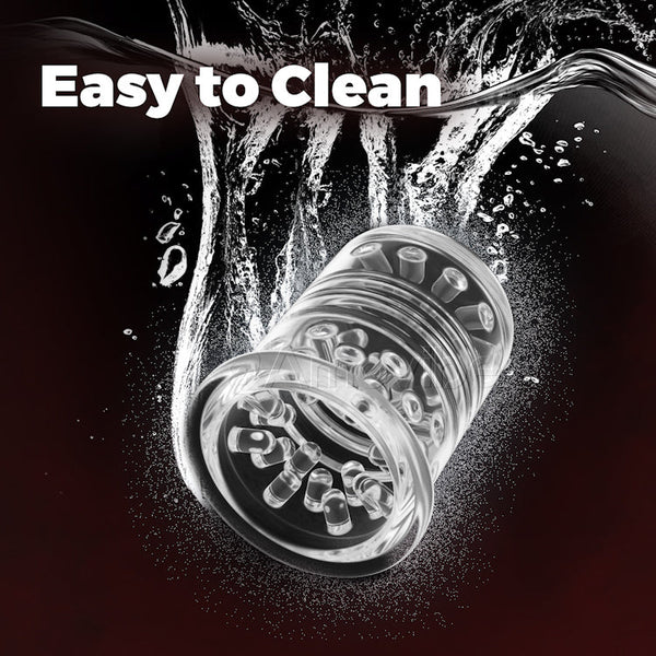 Unser Lustbecher ist aus widerstandsfähigem, klarem Silikon geformt und bietet ein glattes, poliertes Aussehen. Seine angenehme, geschmeidige Textur sorgt für ein perfektes Auf und Ab und bietet ein dynamisches und dennoch visuell fesselndes Erlebnis, das auf den modernen Mann zugeschnitten ist.
