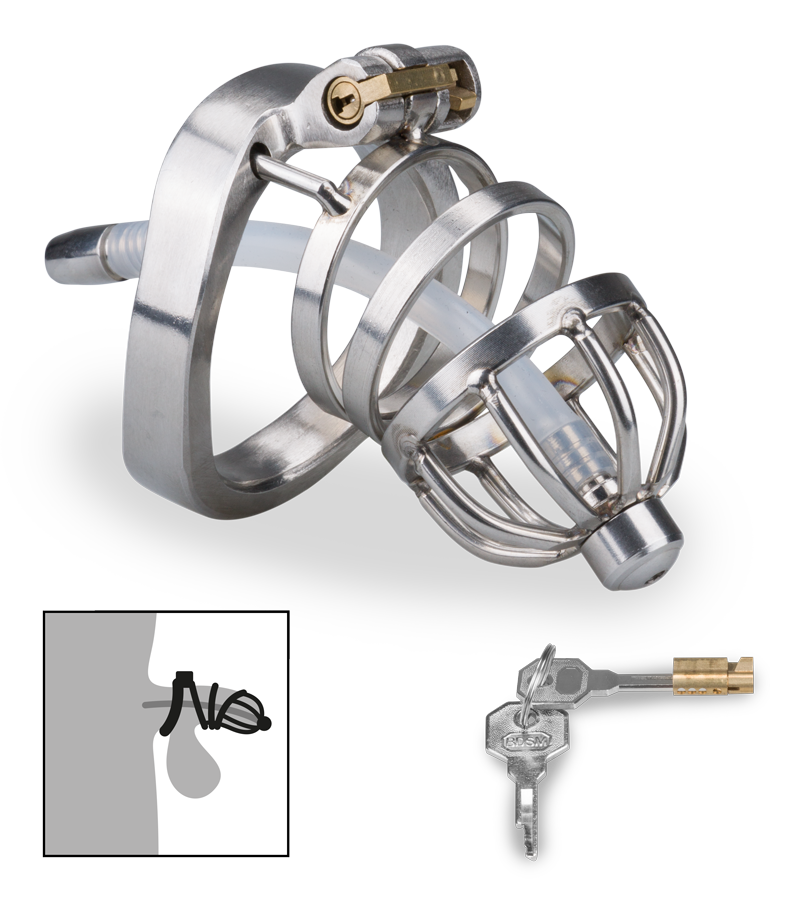 Kurzer Penis-Käfig mit Harnröhrenplug Judgment