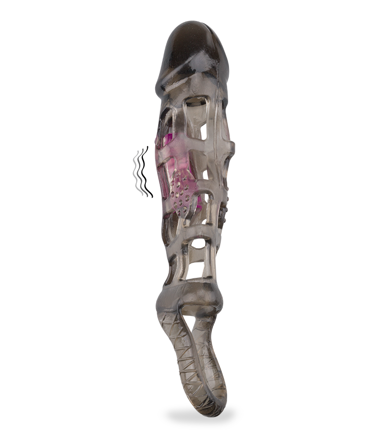 Der leicht durchsichtige Peniskäfig besteht aus einem dehnbaren Material. Die kleine Vibro-Kapsel, die an der Seite des Peniskäfigs befestigt ist, sorgt für aufregende Vibrationen. Alle Beteiligten spüren das Kribbeln und Prickeln, das von dem Vibro-Bullet ausgeht. Der Peniskäfig lässt sich durch das elastische Material einfach überziehen. Der Ring an der Basis wird um die Hoden gelegt und sorgt für einen hohen Tragekomfort. Das Vibro-Bullet ist batteriebetrieben. Die 3 erforderlichen LR44-Batterien sind im Lieferumfang enthalten.