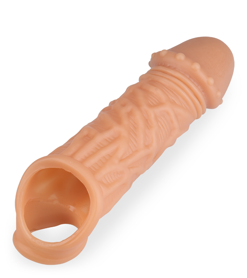 Die elastische Penishülle mit dem hohen Trage- und Nutzungskomfort umhüllt Ihr bestes Stück wie eine zweite Haut. Der Hodenring sorgt dafür, dass die Penishülle immer an Ort und Stelle bleibt und nicht verrutschen kann. Abgesehen von mehr Umfang und einer einer Penisverlängerung schenkt die Penishülle Ihrem Partner oder Ihrer Partnerin eine extraintensive Stimulation dank der ausgeprägten Reliefstruktur bestehend aus Aderung, Eichel und hervorstehenden Hautfalten.