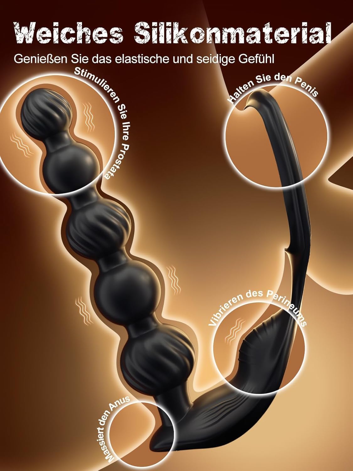 Sex Spielzeug für die Männer, Anal Plug Prostata Massagegerät Buttplug Penisring mit 10 Vibrierenden Modi, Prostata Stimulation mit 5 Analperlen, Wasserdichtes Sex Toyset für die Paare