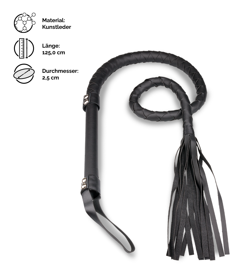 Verpassen Sie Ihrem Partner mit der 125 cm langen BDSM-Peitsche aus Kunstleder eine ordentliche Züchtigung!