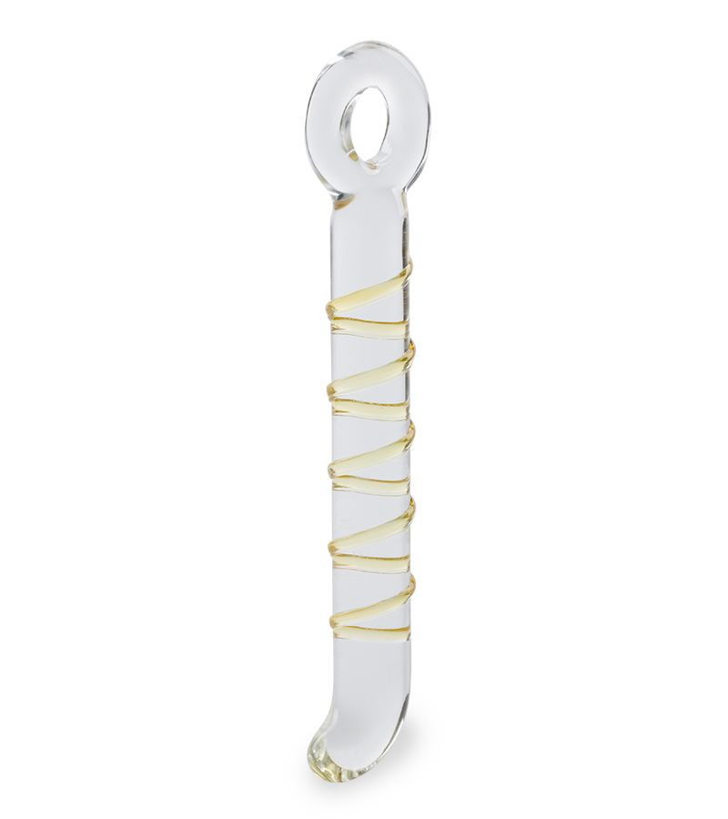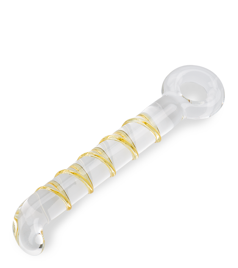 Hinter dem frischen und minimalistischen Design verbirgt sich ein tolles Sexspielzeug, bei dem Material und Form komplett durchdacht wurden, um Ihnen maximales Vergnügen zu bereiten. Führen Sie den Dildo anal oder vaginal ein und spüren Sie nach, wie die leicht gebogene Spitze Sie tief im Innern massiert und stimuliert. Ob G-Punkt-Massage oder Prostata-Massage, weibliches oder männliches Vergnügen, dieser Glasdildo fühlt sich jederzeit und überall toll an. Halten Sie den Dildo an dem kleinen Haltering fest, um ihn auf- und abbewegen zu können und genießen Sie die Massagewirkung der Rillen im Relief. Der Ring dient gleichzeitig als Stopper, der besonders bei der analen Nutzung wichtig ist.