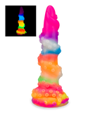Dieser Dildo verzaubert auf den ersten Blick. Im Hellen können Sie die tollen Farben bewundern, die im Dunkeln noch schöner leuchten! Der Dildo ist superelastisch und weich und eignet sich perfekt für den analen oder den vaginalen Gebrauch. Die Reliefstruktur, die sich über die komplette Schaftoberfläche zieht, macht jedes Auf und Ab zu einem lustvollen Vergnügen. Mit dem Saugnapf an der Basis lässt sich der Dildo praktischerweise an jeder glatten Fläche gut befestigen.