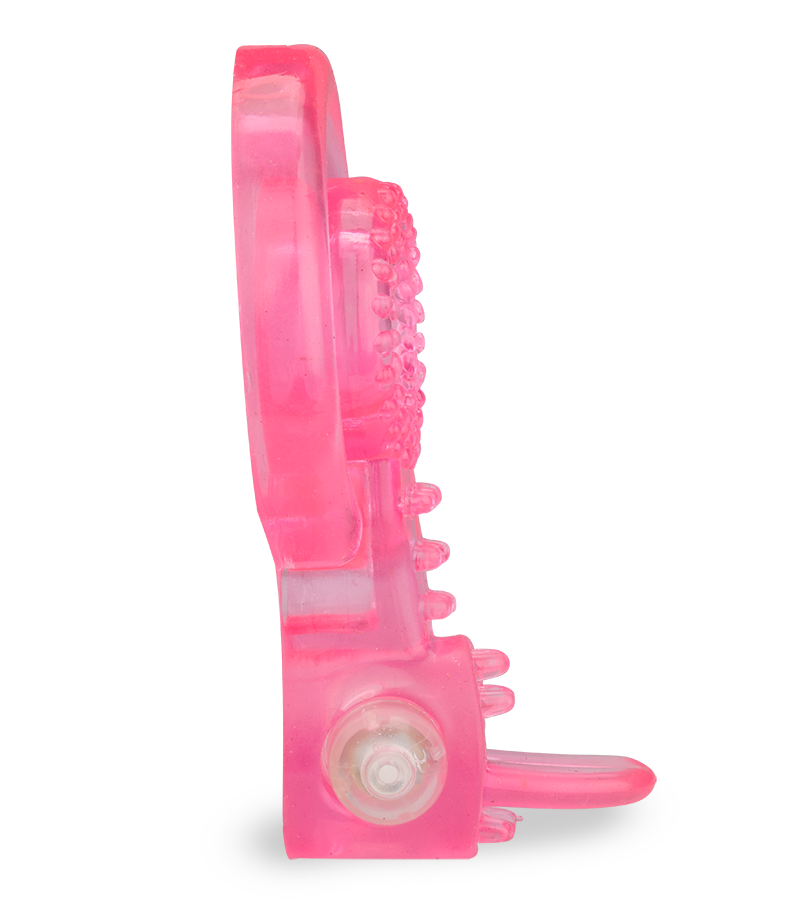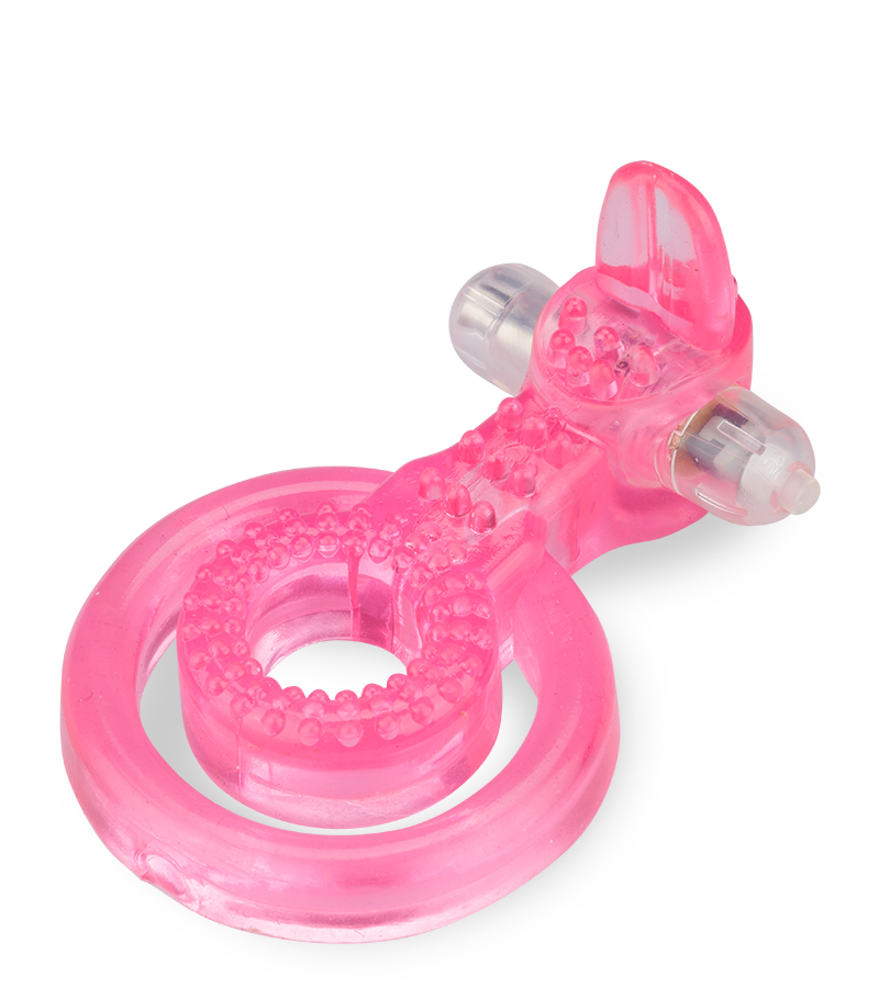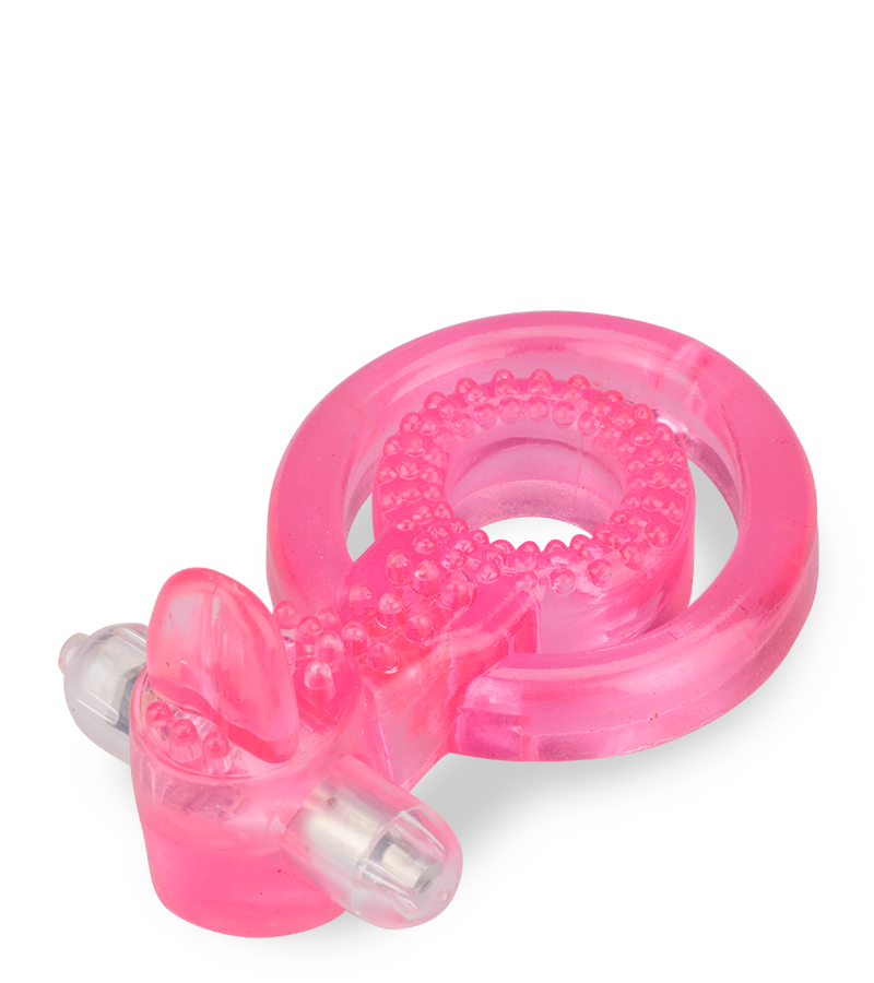Der pinke Vibro-Penisring ist aus nachgiebigem PVC gefertigt. Es ist ein Doppel-Penisring, der aus einem kleineren inneren und einem größeren äußeren Cockring besteht. Der größere äußere Ring wird um die Hoden gelegt, während der kleinere innere Ring über den Penis gezogen wird. Er ist mit kleinen Noppen versehen. Das Vibro-Bullet versorgt Sie und Ihre Partnerin oder Ihren Partner mit herrlich kribbelnden Vibrationen! Die bewegliche Minizunge, die sich um die Klitoris Ihrer Partnerin kümmert, streicht im Rhythmus der Vibrationen über die Klitoris und heizt die Temperatur an! Im Lieferumfang sind die beiden erforderlichen LR41-Batterien für dieses Sexspielzeug enthalten