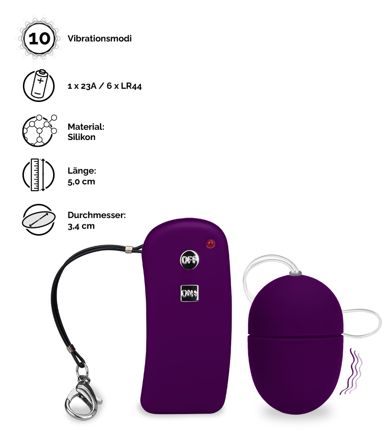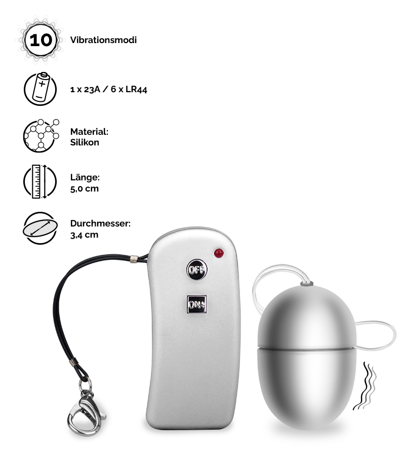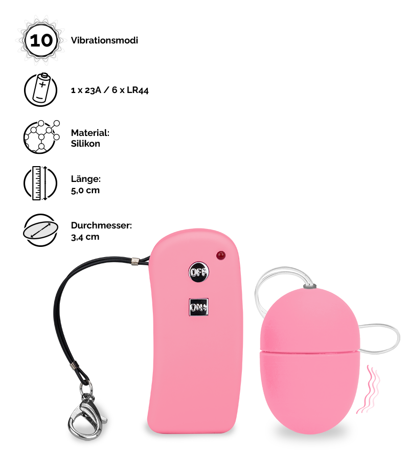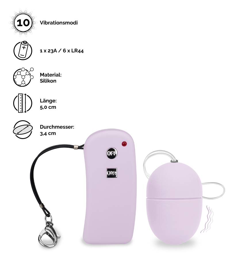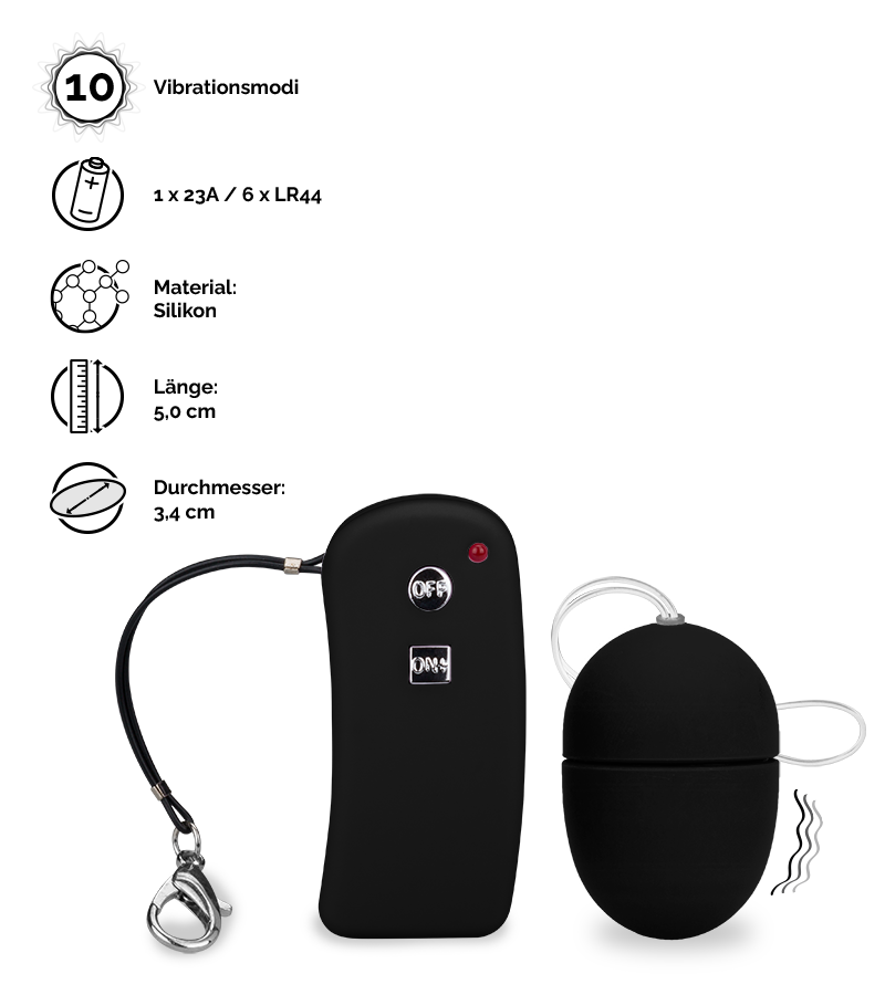 Das kleine Vibroei eignet sich perfekt für Sextoy-Einsteiger. Es hat eine kompakte Größe, bietet eine Vibrationsfunktion mit 10 unterschiedlichen Modi und eine praktische kabellose Fernbedienung. Besonders spannend und lustvoll wird es, wenn Sie das Vibroei zu zweit nutzen und die Funkfernbedienung für kribbelnde Überraschungen einer anderen Person in die Hand drücken.