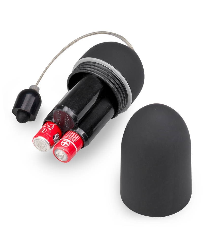 1. Schrauben Sie das Vibroei auf und legen Sie die beiden erforderlichen Batterien entsprechend der Angaben zum Plus-/Minuspol ein.