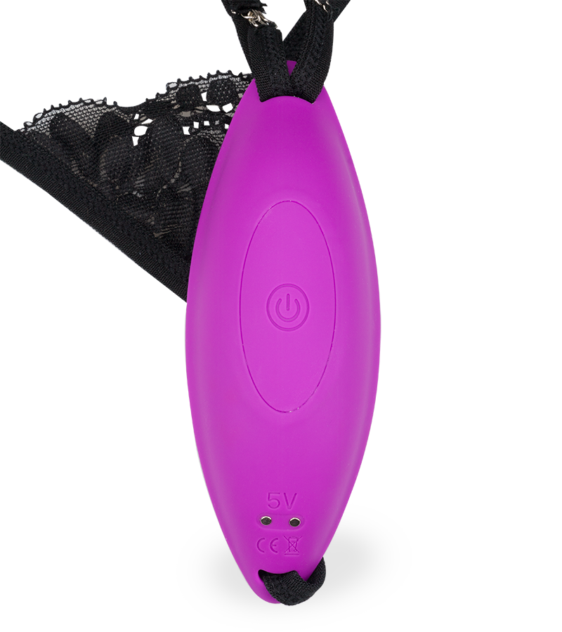 Der Klitorisstimulator, der an einem schwarzen Spitzen-Höschen befestigt ist, hält von allein. Sie haben also die Hände frei! Das Höschen aus schwarzer Spitze wird seitlich zu Schleifen gebunden. Es passt sich also Ihrer Konfektionsgröße an. Mit der kabellosen Fernbedienung können Sie den Klitorisstimulator ganz bequem aus der Ferne steuern oder steuern lassen. Auf Knopfdruck startet die Stimulation der Klitoris durch kribbelnde Vibrationen und eine kleine Massagekugel, die sich unter der weichen Membran hin- und herbewegt. Insgesamt stehen Ihnen 9 unterschiedliche Modi zur Verfügung.